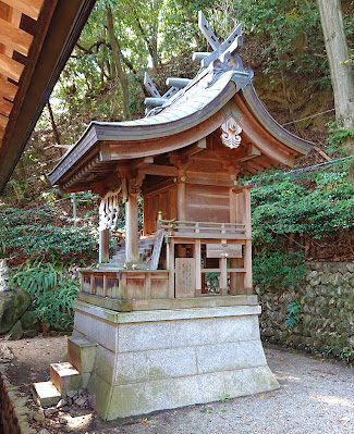 拝殿の左手奥に回ると、さらに高い場所にある本殿の一部を見ることが出来ます。本殿は一間社流造で正面中央に千鳥破風が設けられています。